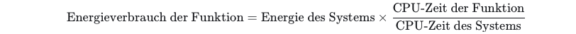 Auf Basis dieser Daten wird anschließend der Energieverbrauch der einzelnen Funktionen näherungsweise bestimmt. Das Verfahren dazu beruht auf der Annahme, dass sich der Energieverbrauch proportional zur CPU-Auslastung verteilt. Damit lautet die Formel zur Bestimmung des Energieverbrauchs: